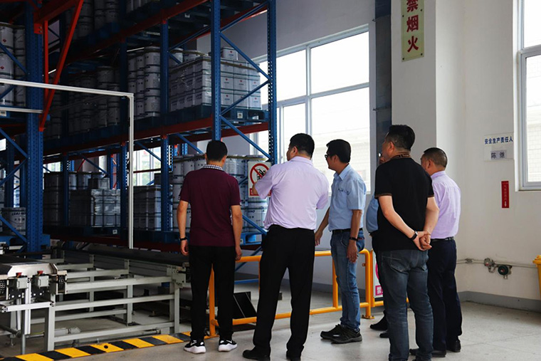 在鄭總的陪同下,成都商會一行先后參觀了形象展示區(qū)、自動化立體倉庫、生產(chǎn)車間、安全消防、油槽區(qū)、污水處理池設(shè)備、RTO治理設(shè)備等,接待人員詳細的介紹了各區(qū)域的運作情況。